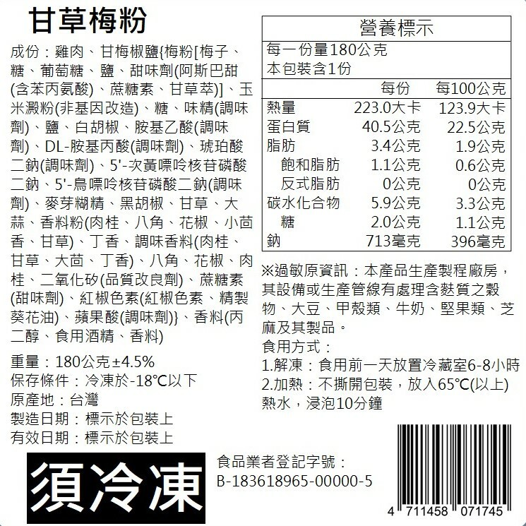 ※過敏原資訊:本產品生產製程廠房,其設備或生產管線有處理含麩質之穀物、甲殼類、大豆、牛奶、堅果類、芝麻及其製品