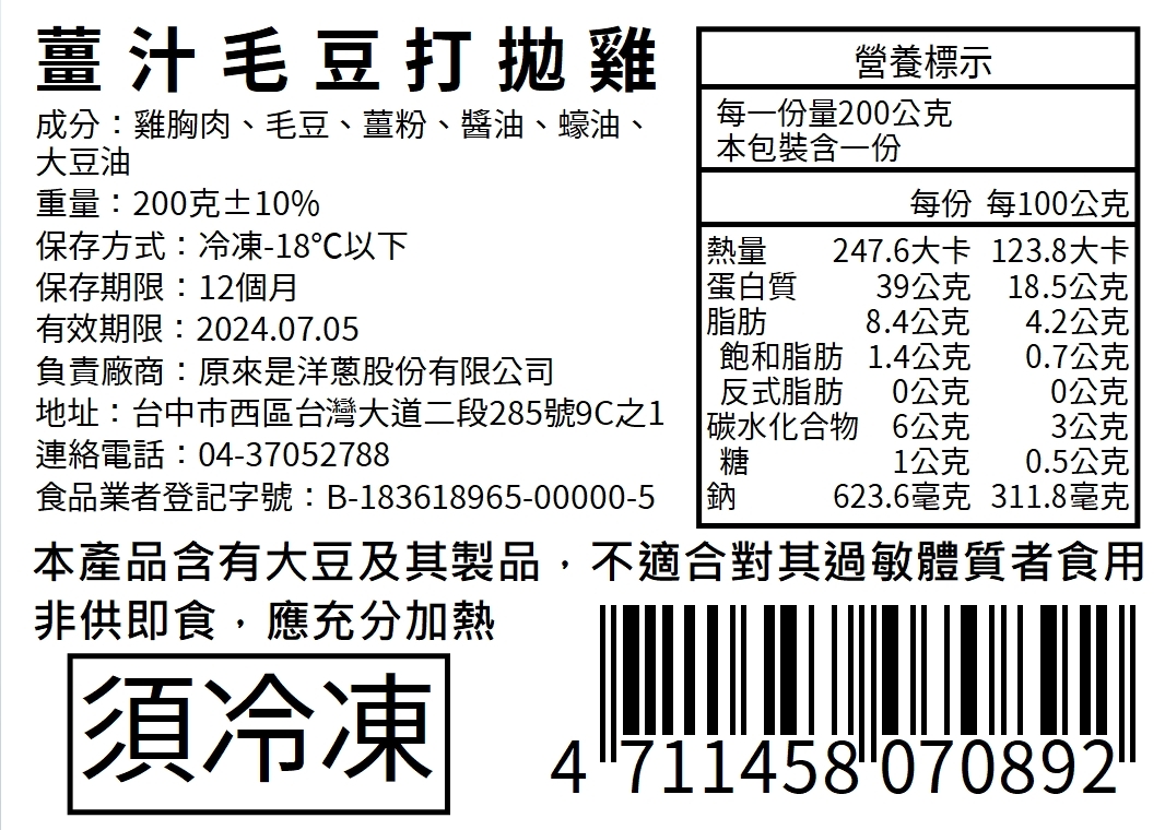 本產品含有大豆、麩質之穀物、牛奶及其製品,不適合對其過敏體質者食用