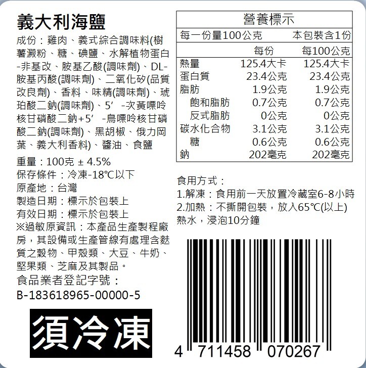 保存條件:冷凍於-18度C以下