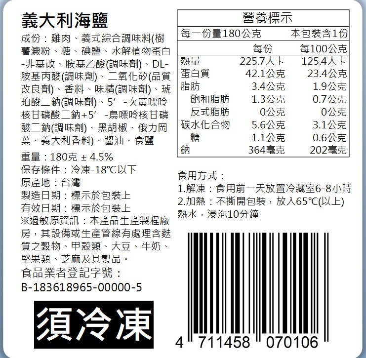 ※過敏原資訊:本產品生產製程廠房,其設備或生產管線有處理含麩質之穀物、甲殼類、大豆、牛奶、堅果類、芝麻及其製品