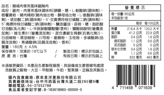 ※過敏原資訊:本產品生產製程廠房,其設備或生產管線有處理含麩質之穀物、甲殼類、大豆、牛奶、堅果類、芝麻及其製品