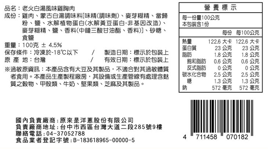 ※過敏原資訊:本產品生產製程廠房,其設備或生產管線有處理含麩質之穀物、甲殼類、大豆、牛奶、堅果類、芝麻及其製品